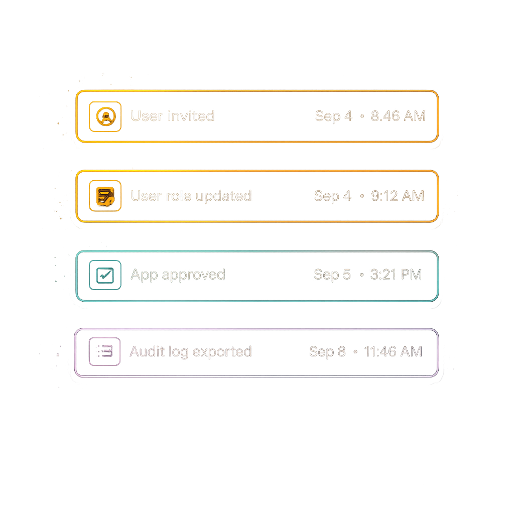 Comprehensive audit logs help track user activity, permissions changes, and key workspace events across the platform.